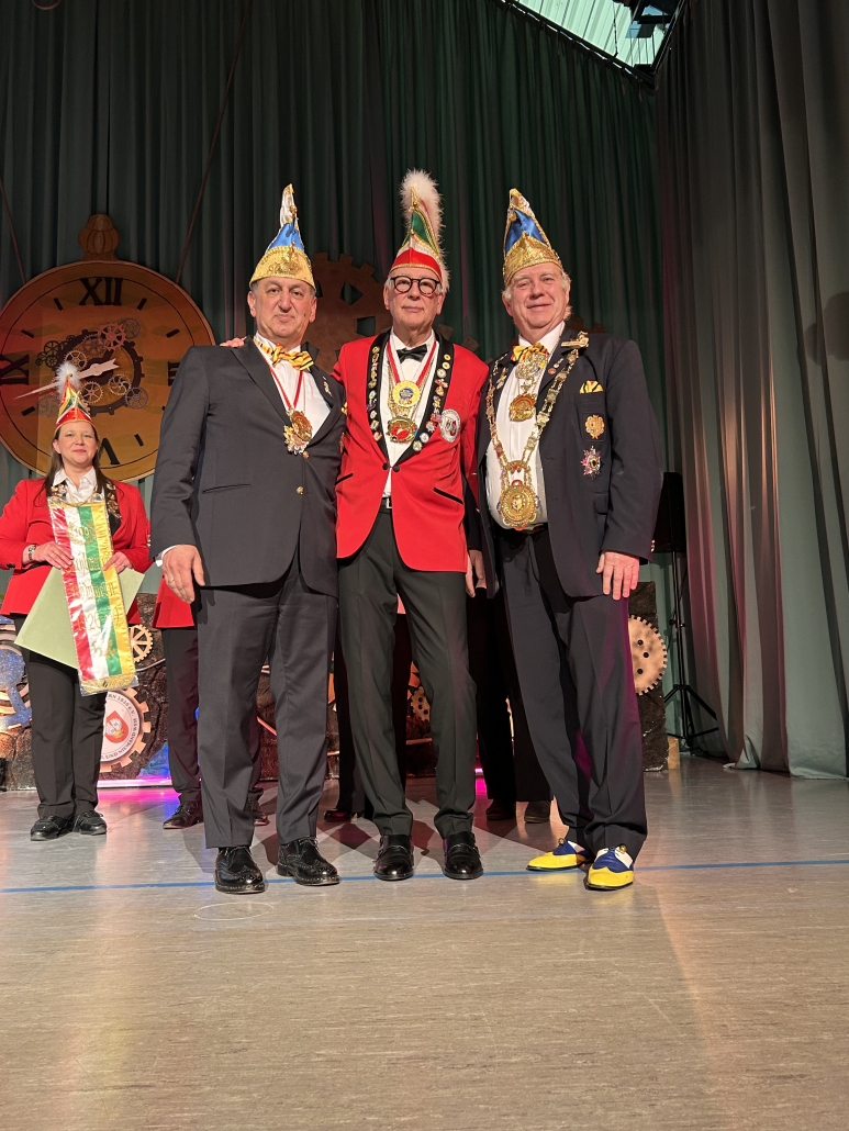 Auch Fastnachtsprominenz war vertreten: Für die Interessengemeinschaft Mittelrheinischer Karneval, IGMK, sprachen Dietmar Jerger und Simeon Dimitriadis. Dabei ehrten sie Bernd Thümmler für sein langjähriges Engagement für den Verein sowie für die mit Fastnacht verbundene Tradition und das Brauchtum. Er erhielt den Verdienstorden in Gold. Prinzessin Monika, die 78. Prinzessin auf Sodenias Thron, ehrte den Verein mit ihrem Besuch und ihren Glückwünschen. Musikalisch setzte der Kabarettist, Daniel Helfrich, mit seinem Pianospiel einen stimmungsgeladenen Akzent zwischen den Redebeiträgen.